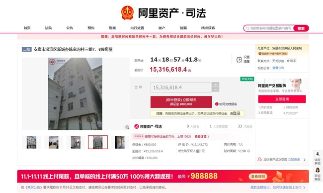 8幢評(píng)估價(jià)13568762元,7幢評(píng)估價(jià)5577011元,合計(jì)19145773元,起拍價(jià):15316618.4元,保證金:800000元,加價(jià)幅度:30000元