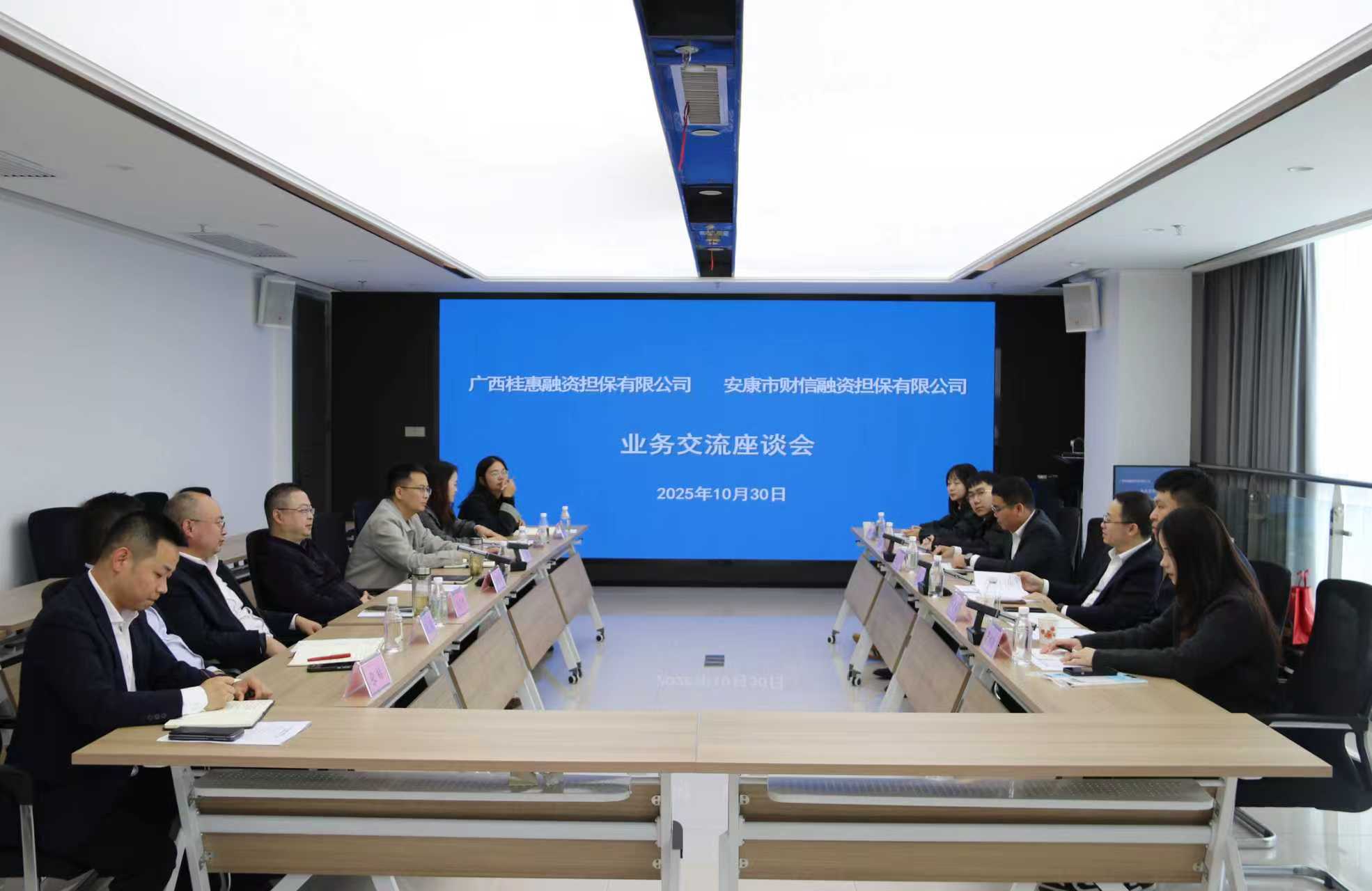 10月30日,廣西桂惠融資擔(dān)保有限公司副總經(jīng)理潘誠一行6人來安康財信擔(dān)保開展交流座談。安康財信擔(dān)保董事長滕海濤,副總經(jīng)理張萬坤及公司業(yè)務(wù)、風(fēng)控、法務(wù)、財務(wù)、綜合部門負(fù)責(zé)人參加座談會。